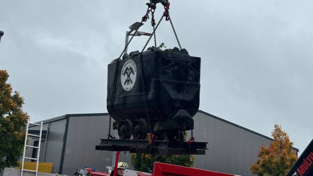 Der Förderwagen hat nun einen festen Platz Am Hellweg in Gerthe.